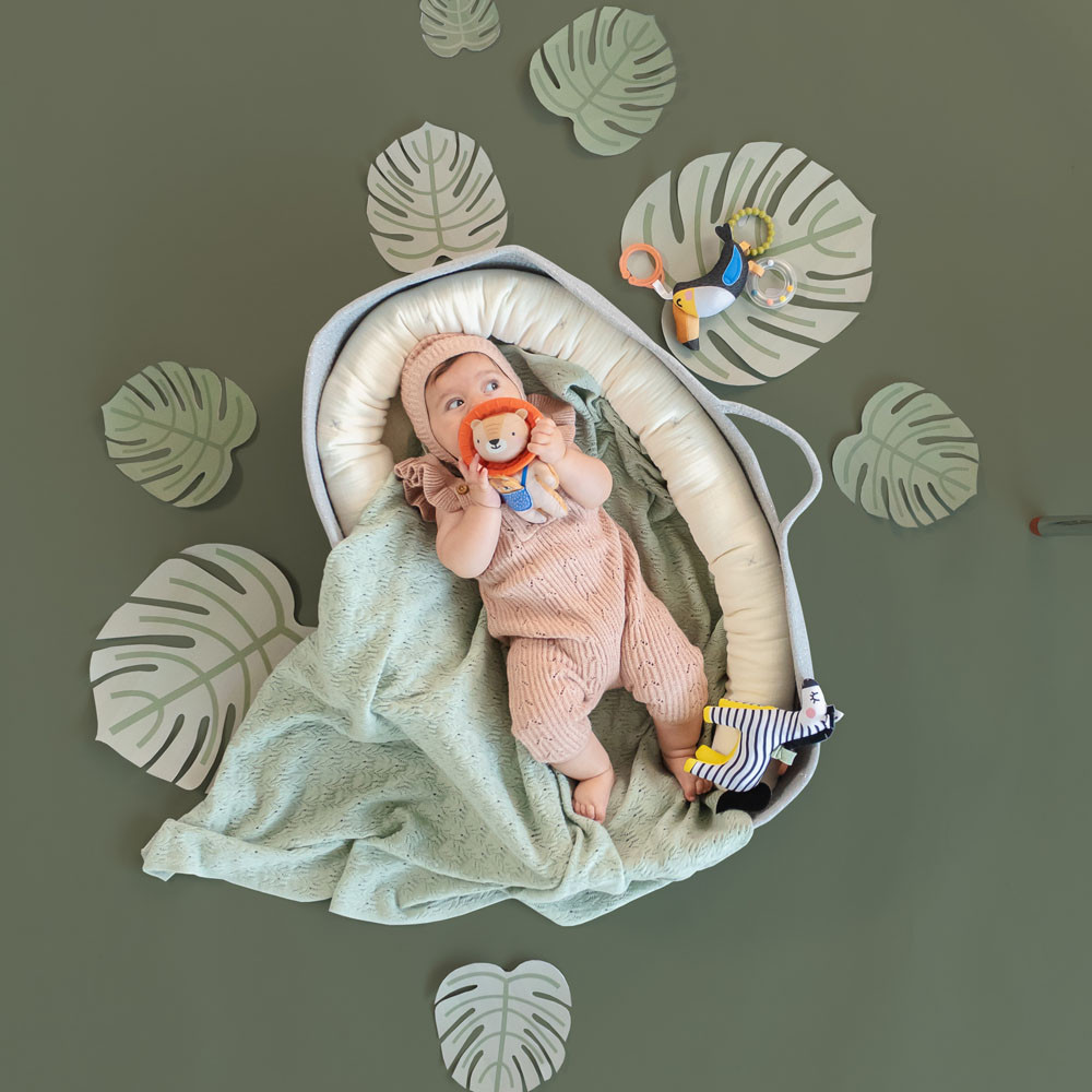 Aranyos oroszlán csörgõ rágókával, ami megkönnyíti a baba fogzását. Könnyen feltehetõ babakocsira, bébihordozóra vagy kiságyra.