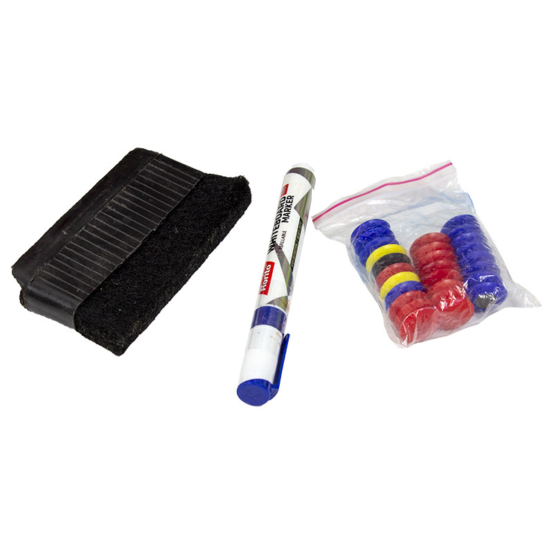 Aktivsport Taktikai mágnestábla 60 x 90-es méretben, futballhoz.Filctollal berajzolható/írható, letörölhető alumínium keretes tábla.A tábla könnyű, így szállítása egyszerű.A taktikai tábla falra is akasztható, a felakasztó méretre állítható.A mappa tartalmazza: a mágnes játékosokat, (12 db kék, 12 db piros, 2 db sárga /kapusok/, 1 db fekete /játékvezető/), filctollat és táblatörlő kefét.