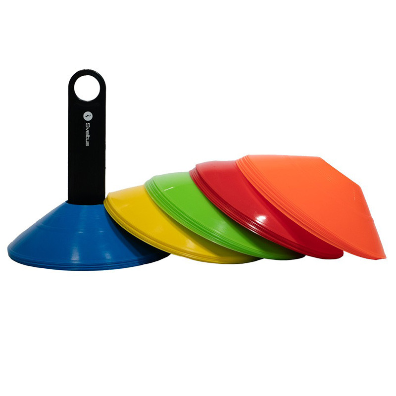 40 db-os tányérbója szett.Optimalizáld az edzéseidet ezzel a bójaszettel, amely ideális az agilitás, a koordináció és a gyorsaság fejlesztéséhez.Tökéletes focizáshoz, fitneszhez vagy edzőpályák kialakításához, ezek a könnyű, tartós bóják számos különböző gyakorlat elvégzését teszik lehetővé.Élénk színük maximális láthatóságot biztosít, még kültéren is.A mellékelt tartónak köszönhetően könnyen tárolhatók és szállíthatók.Nélkülözhetetlen kiegészítő, hogy lendületet adj az edzéseidnek!A bója átmérője 19 cm.