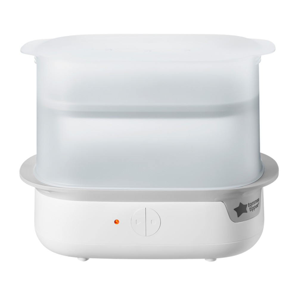 Az elektromos gõzsterilizáló hatékony segítséget nyújt a szoptatási és etetési eszközök megfelelõ higiéniájának biztosításához. Használata gyors, egyszerû, nincs szükség forralásra vagy egyéb idõigényes sterilizálási módszerre. A sterilizálási ciklus lejárta után, a tetõ felnyitása nélkül a tartalma 24 óráig steril marad.