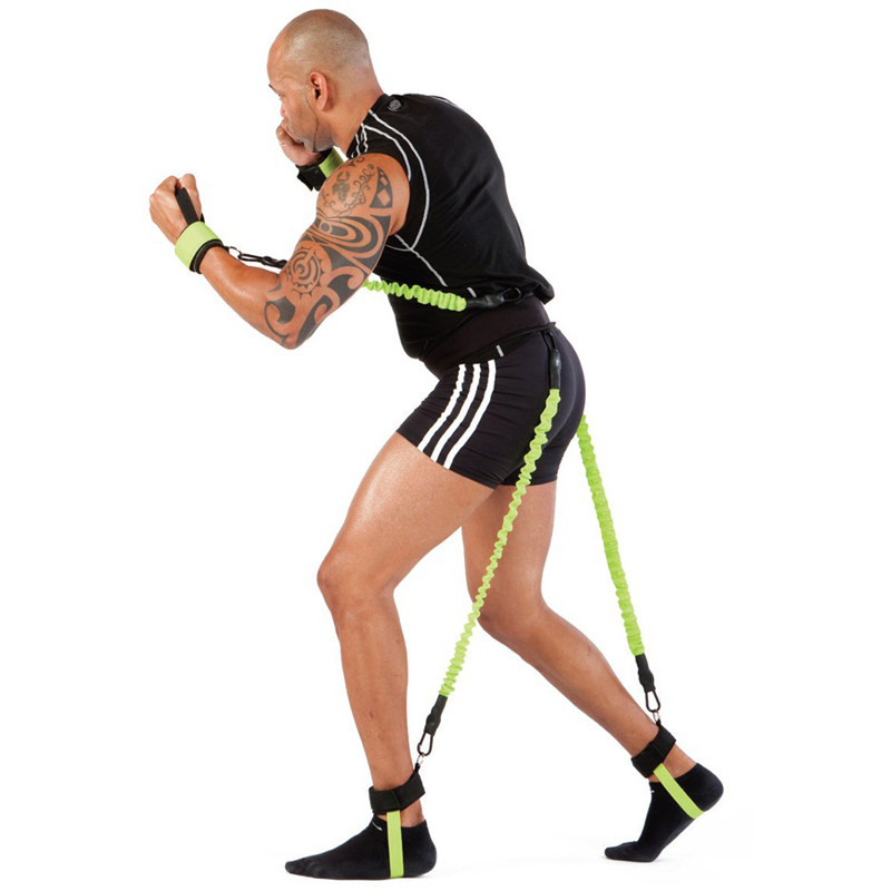 A csomag tartalmaz: 4 db elasztikus pántot, 2 db csukló rögzítőt, 2 db boka rögzítőt és 1 db övet.