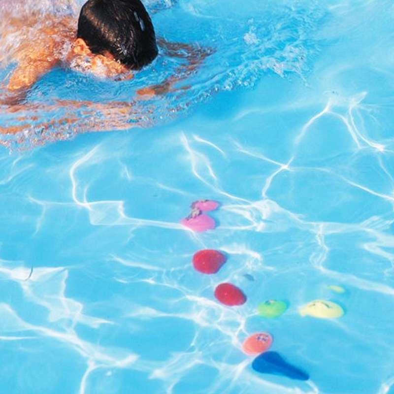 Kiváló ügyességi játék gyerekeknek. A labdákat a medence aljáról kell összegyűjteni, a vízbe bedobva lesüllyednek az medence aljára, és ott lehet összeszedni, akár szín szerint sorba is. Ügyességi játék, melyet a gyerekek is élveznek. A szett 6 db színes labdát tartalmaz. A labdák átmérője 70 mm.