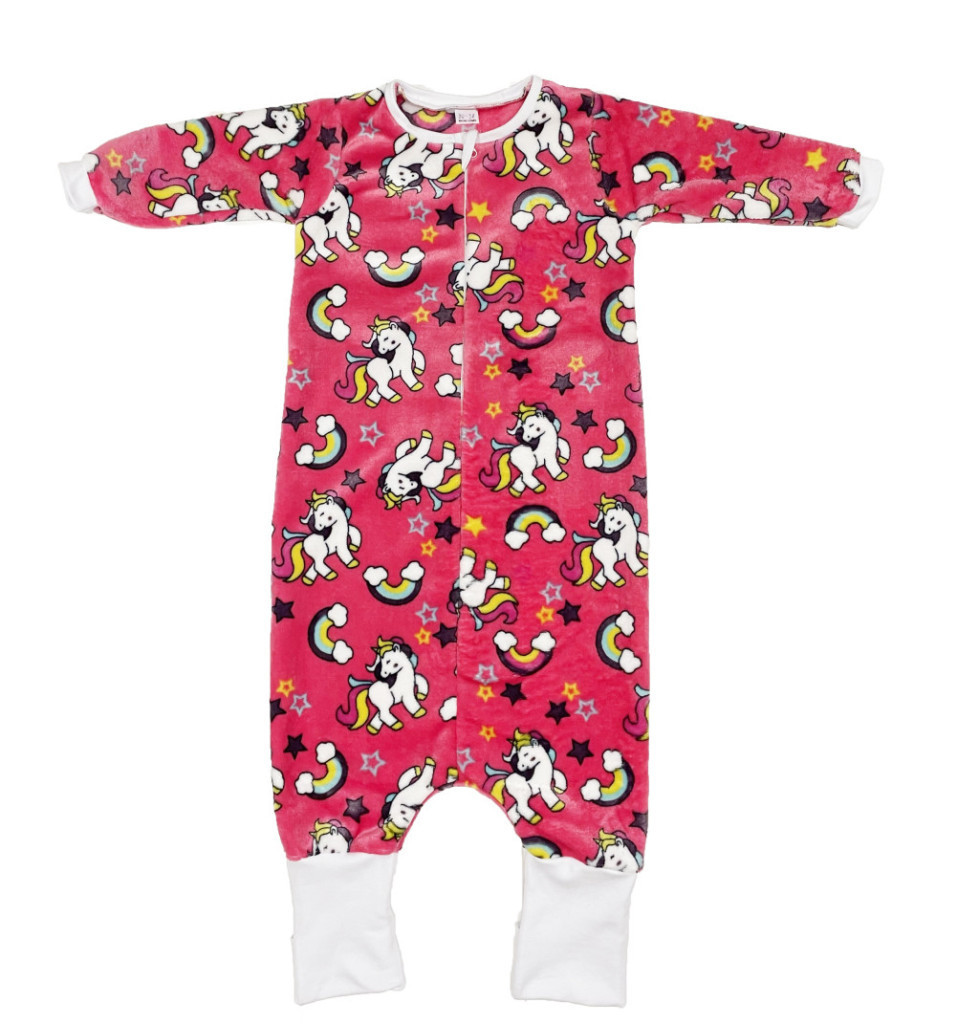 Wellsoft mintás elől cippzáras, hosszú ujjú puha meleg lábas hálózsák.br Ideális választás a kisgyermek kényelmére.br A lábszára lehajtható a lábfejére, és totyogós hálózsáknak kiváló br Anyaga 100% poliészter Passzé 100% pamut