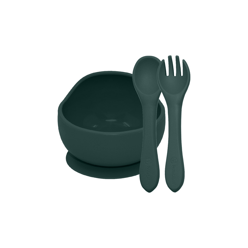 PETITE&MARS Szilikon 2 részes étkészlet TAKE&MATCH  tál + evőeszközök Misty Green 6hó+